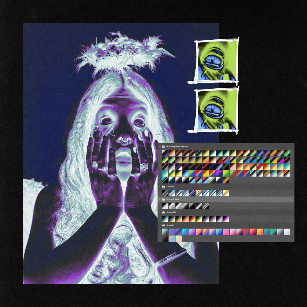 This assets contains more than 100+ gradient maps colors to elevate you designs with intrigue and interesting combinations. The different combinations where created "beginner and intermediate friendly" in mind. it also includes, Chrome combinations for: titles, Logos, and typography styles.
